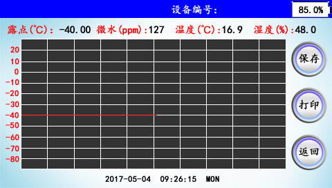 首先打開面板上的流量閥調(diào)節(jié)流量,把流量調(diào)節(jié)到0.6L/min左右,開始測量SF6露點(diǎn)。第一臺設(shè)備測量時間需要5~10分鐘,其后每臺設(shè)備需要3~5分鐘。