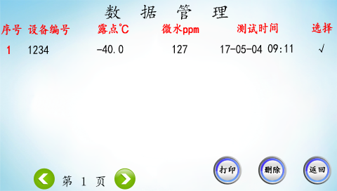 選中數(shù)據(jù)后,點(diǎn)擊“打印”,可以打印該條數(shù)據(jù)。點(diǎn)擊“刪除”,可以選擇是否將數(shù)據(jù)全部刪除。
