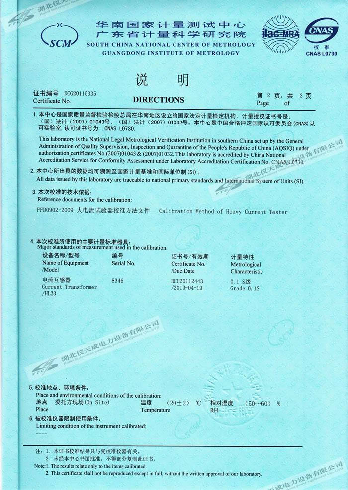 轉(zhuǎn)載:"YTCDG-2000A大電流發(fā)生器的資質(zhì)證書(shū)" 請(qǐng)注明來(lái)源于儀天成電力。 更多技術(shù)問(wèn)題請(qǐng)致電儀天成電力客戶服務(wù):027-87876585,技術(shù)部專線:027-87876585,在線客服:719388481